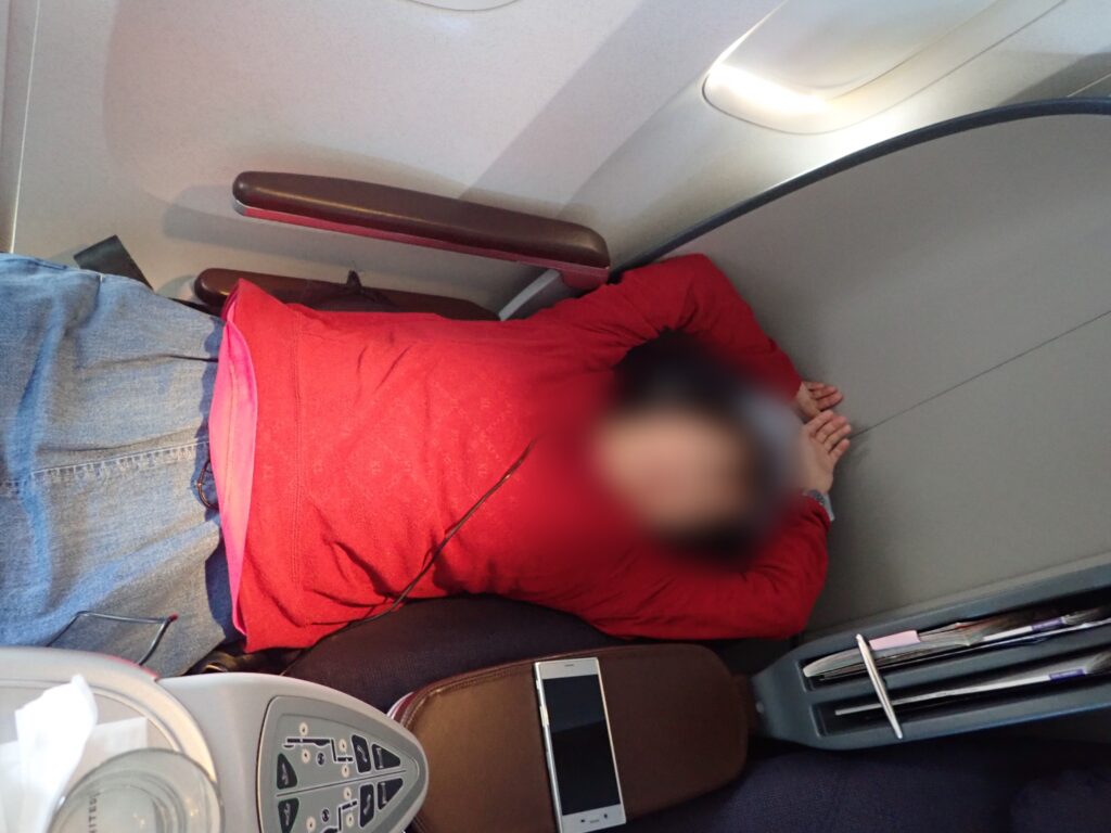 4時間かからないので、フルフラットにして寝ている人はほとんどいませんでした。